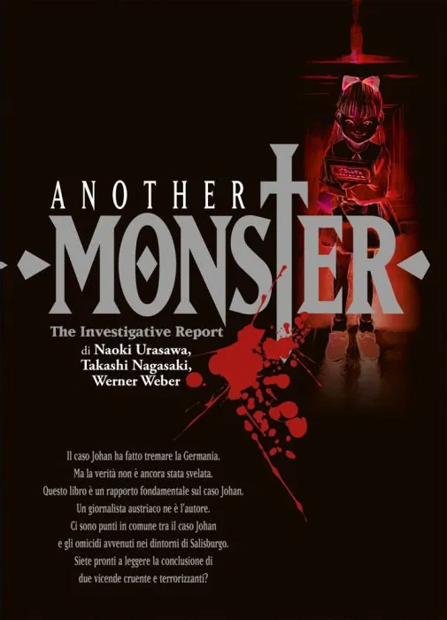 Another Monster: The Investigative Report (もうひとつのMONSTER, Mō hitotsu no Monster?) is a light novel by Werner Weber. Weber interviews several key characters from the Monster story in 2001 and investigates the events from the past, mostly detailing the occurrences before and after Johan Liebert was born. It is a 31-chapter manuscript that summarizes the series and provides extra information about some of its key characters.