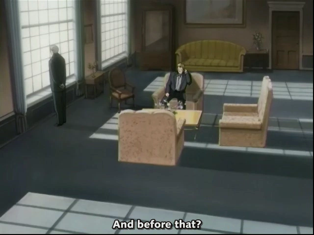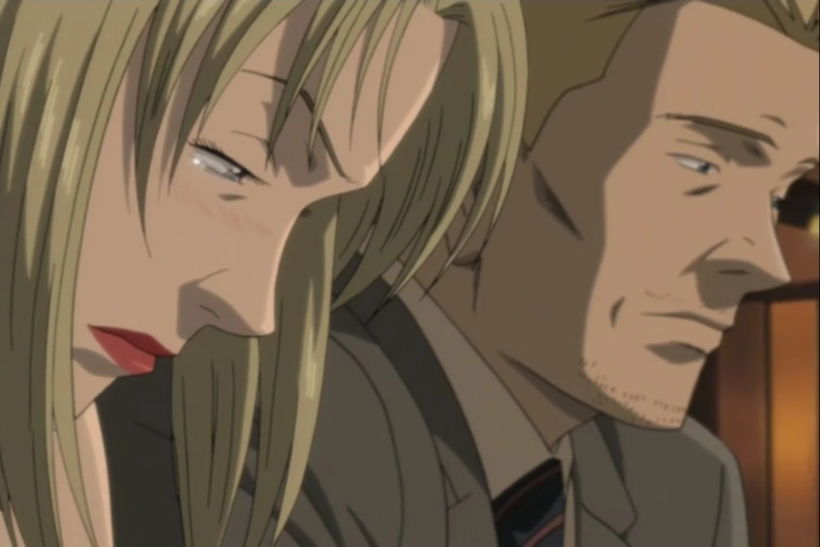 Sometime later Martin met Tenma in Robbie's diner after Robbie mentioned that an Asian man had been coming around the place, asking about Martin. Martin recognized him and began to beat him up while Tenma tried to interrogate him. Several nights later at another one of the high-class parties, Martin casually informed Eva about his encounter with Tenma. That same night, Eva told him that her job was done and she was invited by Čapek to dine with him. While those two went off to a restaurant, Martin went to Robbie's diner and he met Tenma again who threatened Martin with a gun. Martin told him that Eva had simply pointed at a young man at the party and Tenma became upset, telling Martin that had been Eva's job and now that it was complete, she was going to be killed. Shocked at this realization, Martin went to the restaurant where he'd dropped Eva and Čapek off. When he got there, only Čapek was there, who told him Eva had been taken back to her hotel room. He then ordered Martin to kill Eva. Martin got to the hotel room and found a drunk Eva, who told him to kill her as she knew that was his next assignment. Instead, Martin asked her to run away with him, but in her intoxicated state, she harshly rejects him. She keeps pushing for him to kill her but then falls over and passes out. He then took her to a different hotel and hid her there.