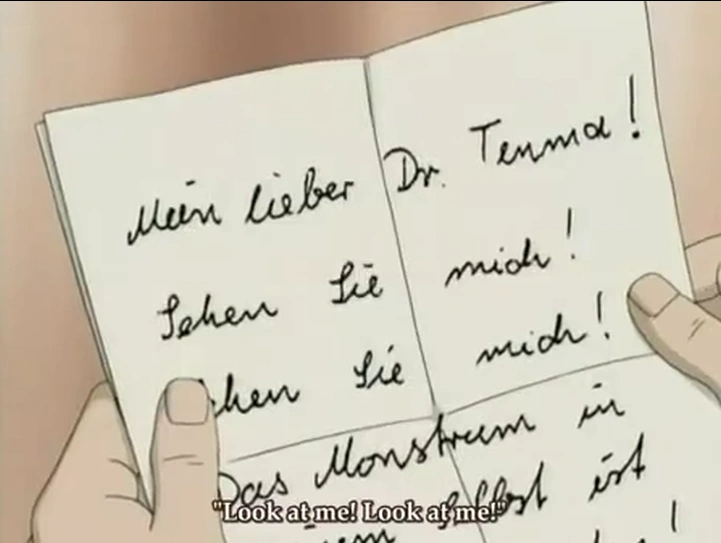 This confession heightened Dr. Gillen's understanding of what was going on. He searched Frau Kemp's room and found a stack of letters. The letters contained the messages Dr. Tenma showed him during his visit. This made him believe that Jürgens' "friend," otherwise known as Johan, really existed.