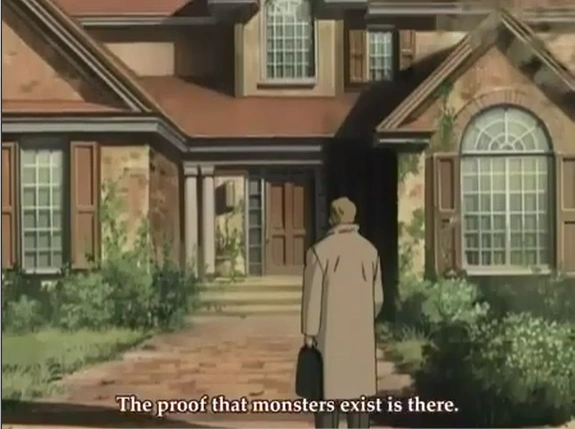 Dr. Gillen did a mirroring technique where he tried to reconstruct what Tenma was trying to say: that Johan has a personality who murdered and another personality that stopped it. He also stated the fact that many serial killers leave such kind of messages, but most of them are using it to avoid criminal liability. Being a psychoanalyst, Dr. Gielen said that, no, serial killers are not the introverted ones, but the extroverted: sociable and persuasive. Dr. Tenma felt that he was being incriminated, so he said that Johan might just be playing with him. Dr. Gillen rolled his cassette recorder and asked Dr. Tenma to tell more about Johan. To make him more comfortable, Gillen did his usual water cooler story of his divorce with his wife.
