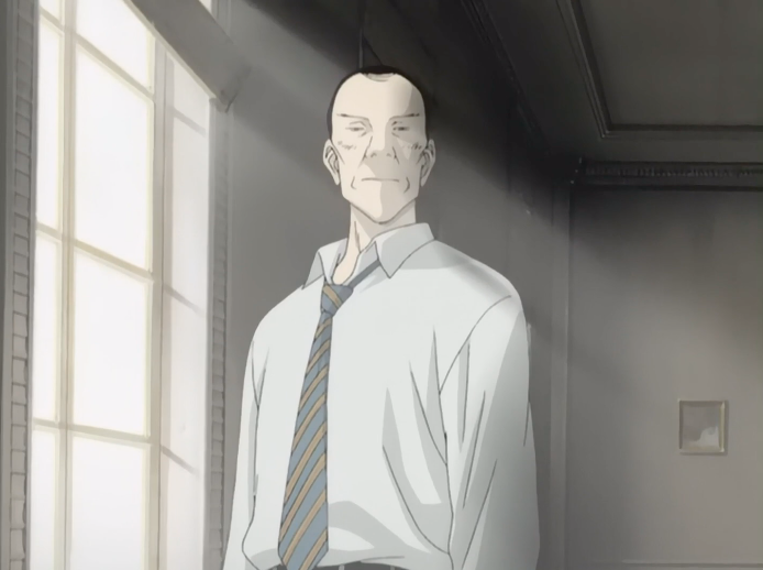 Grimmer tells Tenma that he plans to send a letter to the police blaming himself for Petrov's and Zeman's murders and then they part ways. Soon after, the police arrives and arrests Tenma.